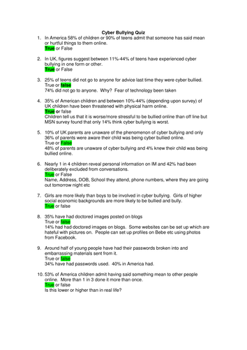Bullying Quiz Answers | Montville, CT Patch from cdn.patchcdn.com Select one or more questions using the checkboxes above each question. Jan 06, 2021 · doraemon was a robotic cat sent back from the future to act as a guide and protector for one of our favorite characters nobita nobi. Sep 22, 2021 · a comprehensive database of more than 51 internet safety quizzes online, test your knowledge with internet safety quiz questions. November 9, 2021 november 11, 2021. Our online internet safety trivia quizzes can be adapted to suit your requirements for taking some of the top internet safety quizzes. We're adding the prevalence of bullying and harassment to our community standards enforcement report for the first time. We send trivia questions and personality tests every week to your inbox. Meta an update on our longstanding work to protect people in ethiopia.